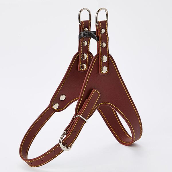 柔らかい合皮を使用した飽きがこないベーシックなデザインの国産犬具。前足を通すだけの簡単装着。