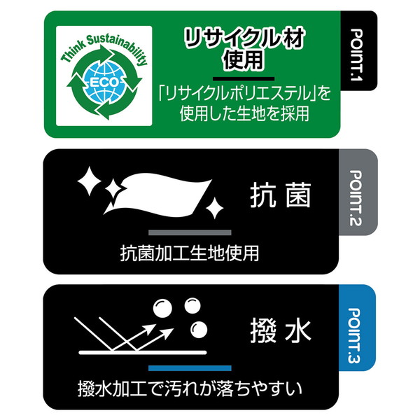 ★抗菌加工、撥水加工は使用環境により、機能が徐々に低下します。