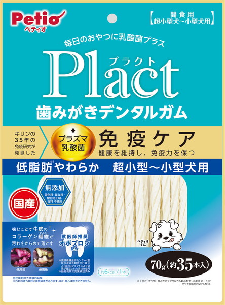 ペティオ プラクト Plact 歯みがきデンタルガム 超小型〜小型犬 低脂肪やわらか 70g オーラルケア 国産 犬用おやつ 低脂肪約75%カット・酸化防止剤・保存料・着色料・香料無添加・オボプロン配合・グレインフリー 1歳〜 Petio