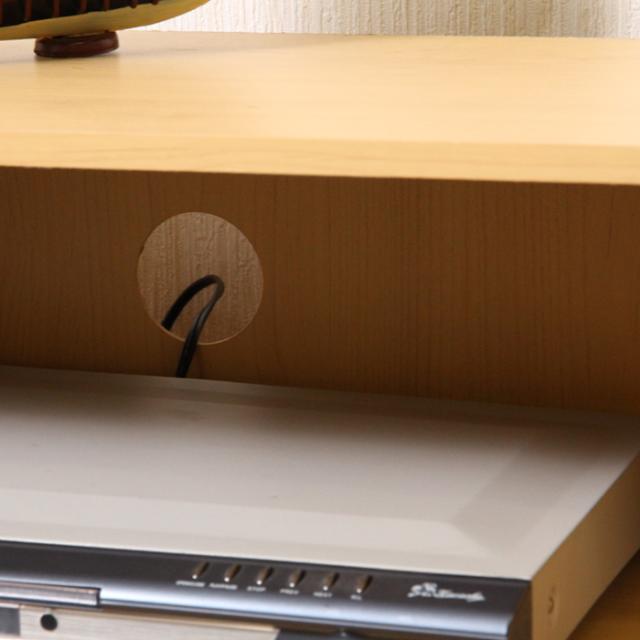 背面には上段と下段で1つずつコード穴が空いているので、AV機器やゲーム機など、配線が心配なものもスッキリと片付けることができます。