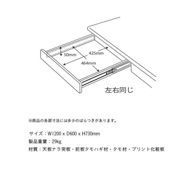 天板ナラ突板、前板タモハギ材 タモ材、プリント化粧板