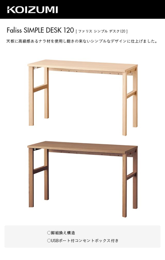【天然木ナラ材使用/コンセント・引き出し付き】コイズミ KOIZUMI 学習机 学習デスク Faliss(ファリス) シンプルデスク FLD-953MO/FLD-963WO 幅120cm パソコンデスク リビングデスク 子供 机 おしゃれ コンパクト スリム 木製