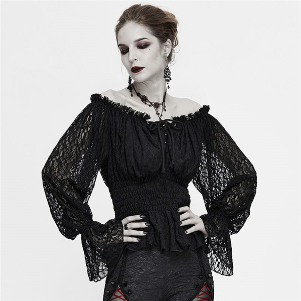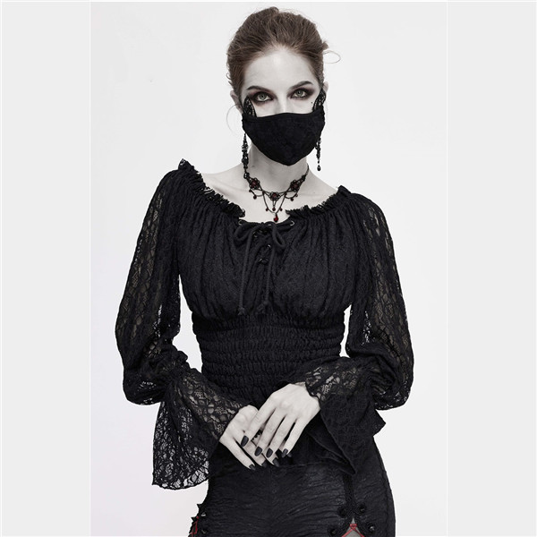 【送料無料】シャツ トップス オフショルダーブラウス ゴスロリ 長袖 ガードル シャツ 上着 ゴシック風 中世 17世紀 貴族風 ブラック 学園祭 文化祭 パーティー 演奏会 演劇