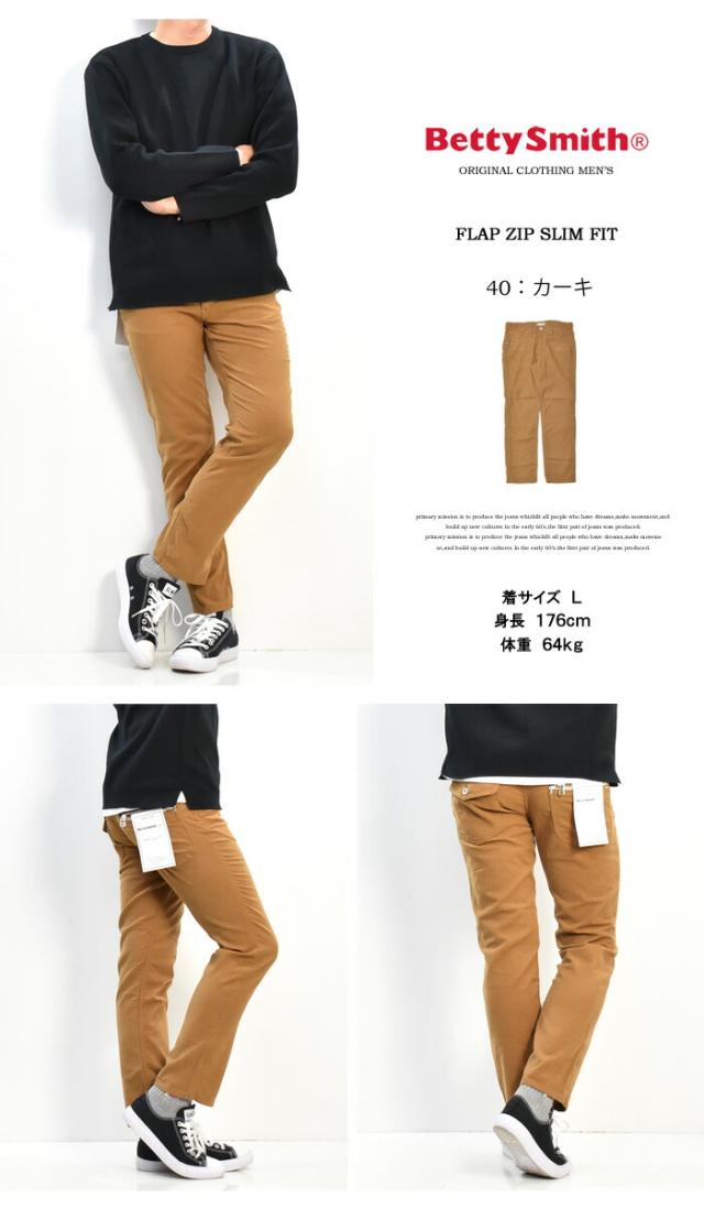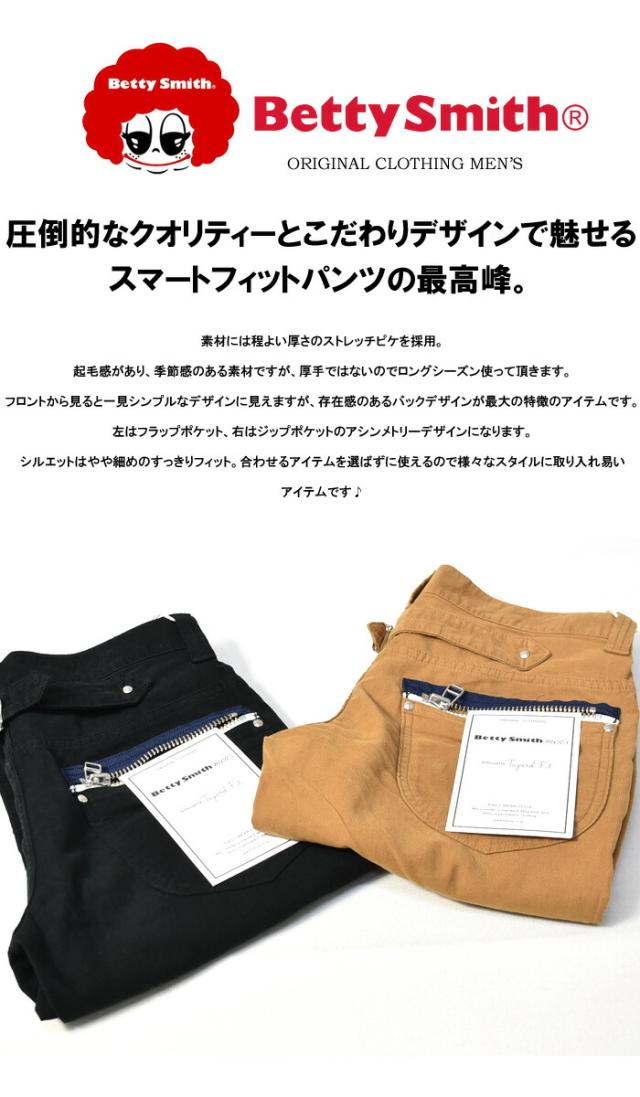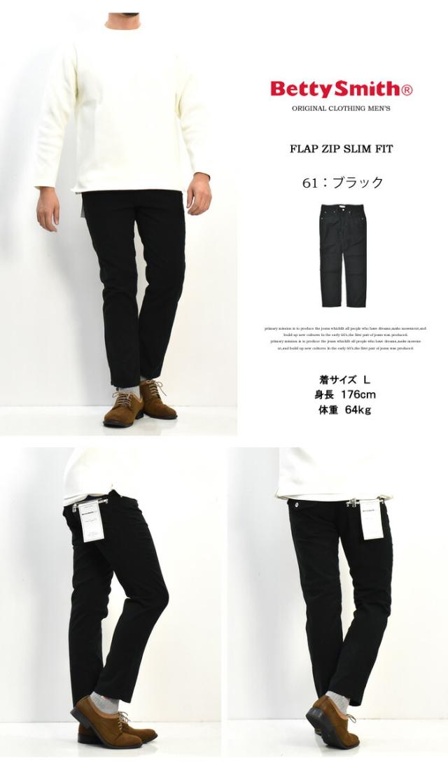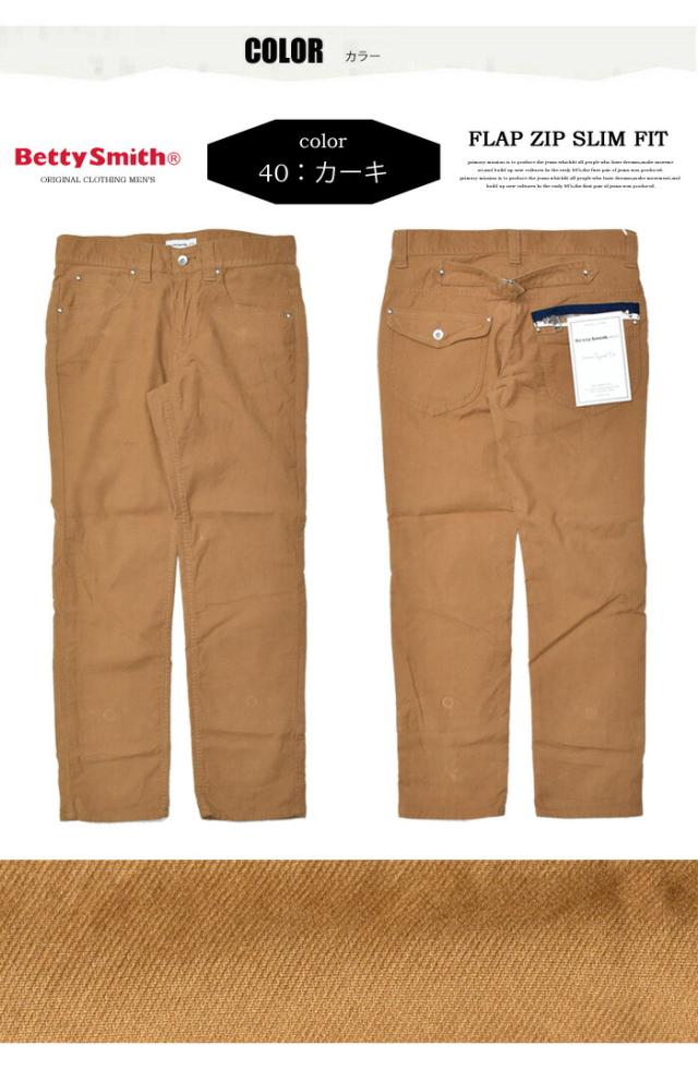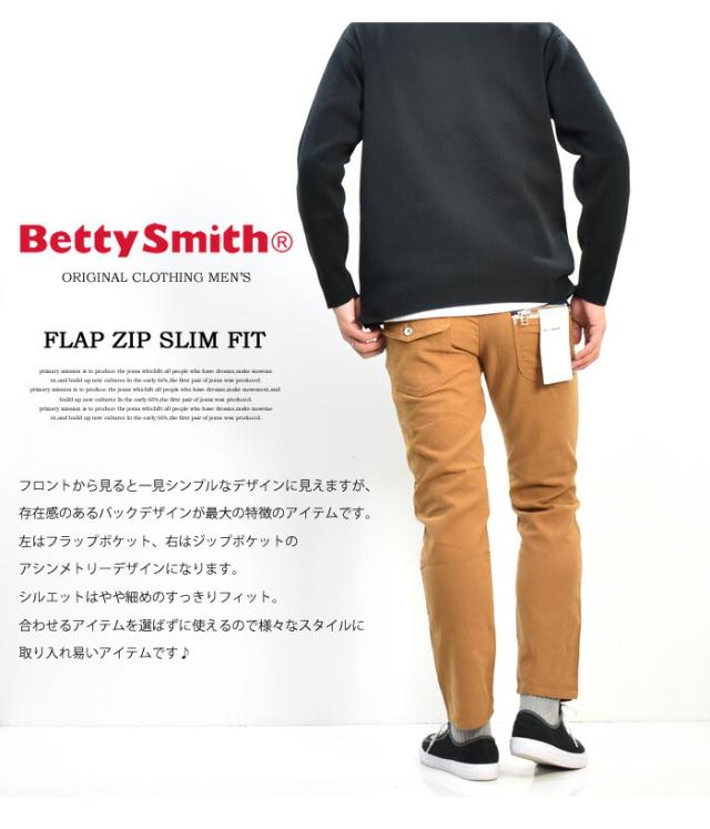 セール SALE Betty Smith メンズ フラップ ジップ スリムフィットパンツ ベティスミス ストレッチ素材 日本製 送料無料 BAM-1023E