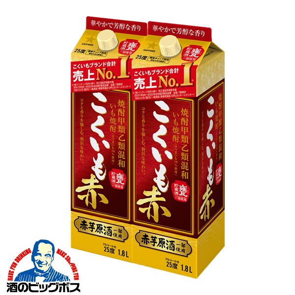 焼酎 紙パック 送料無料 サッポロ こくいも 赤 25度 1800ml×2本(002)『OMS』 1.8L 焼酎甲類乙類混和いも焼酎