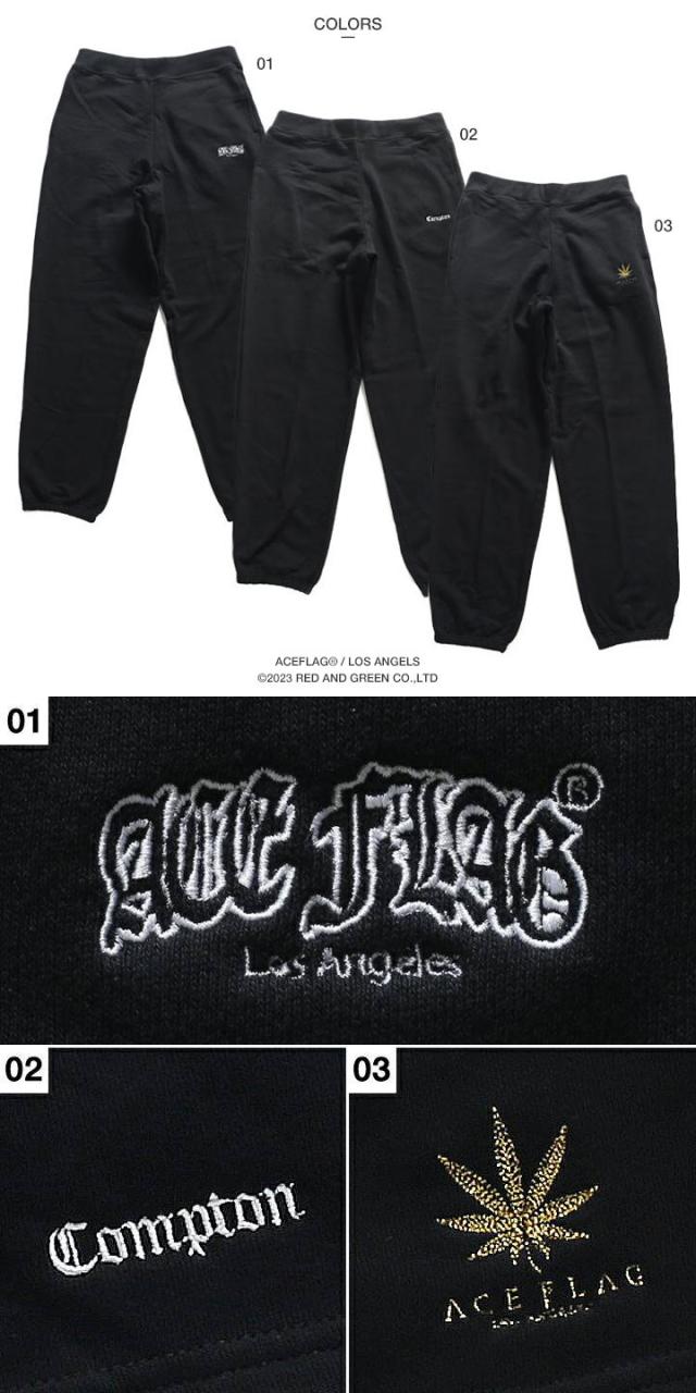 ACEFLAG スウェットパンツ メンズ レディース 黒 大きいサイズ エースフラッグ ロングパンツ おしゃれ Compton コンプトン ダンス 大麻 ヘンプ 刺繍 ギャング b系 ヒップホップ HIPHOP ストリート系 ハイ AF-LP-SW-018