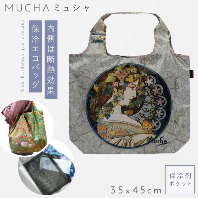 名画 グッズ トート バッグ アート エコバッグ 折りたたみ コンパクト 絵画 有名画家 アンティーク おしゃれ モダン 名画クーラーエコバッグ ミュシャ Mucha 蔦
