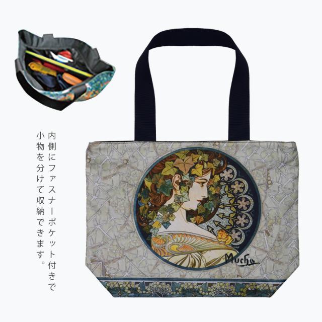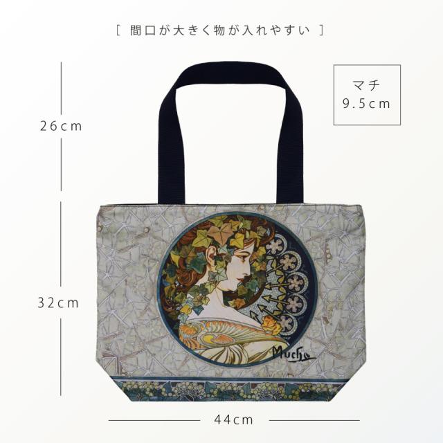 名画 グッズ トートバッグ A4 トート バッグ アート 有名画家 アンティーク レディース おしゃれ モダン マチあり ファスナー付き 持ち手長め 名画バッグ Lサイズ ミュシャ Mucha 蔦