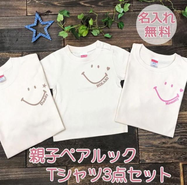親子 ペアtシャツ ペアルック tシャツ 赤ちゃん 3枚 セット 親子ペア 親子コーデ リンクコーデ 名入れ ペア コーデ おそろい 大人 子供 お揃い 男の子 女の子 ベビー 出産祝い 誕生日 夏 プレゼント smile スマイル マタニティフォト おしゃれ 半袖 ブランド 【スマイル】