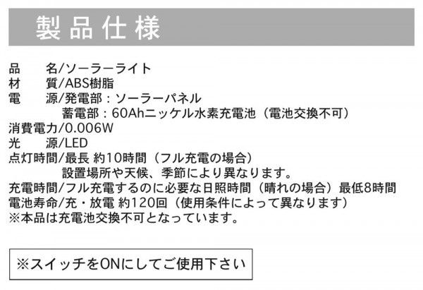 | 仕様 | 光センサー付き 組立式 LED:イエロー |