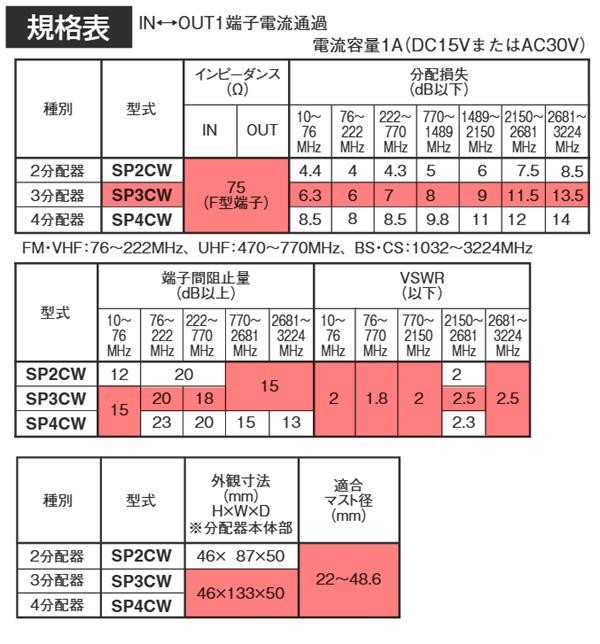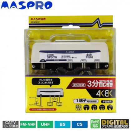 マスプロ電工 屋外(内)用 4K・8K衛星放送(3224MHz)対応 1端子電流通過型 3分配器 SP3CW-P |b03