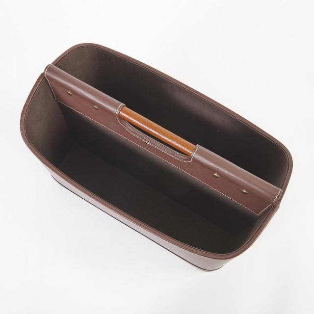 商品詳細:雑誌や新聞を手軽に収納できます。もち手つきなので、掃除のときなどのちょっとした移動にも便利です。 生産国:中国 素材・材質:合成皮革(PU)、天然木他 商品サイズ:高さ255×幅335×奥行180mm