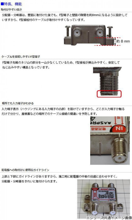商品概要:4K・8K衛星放送に対応、地デジ・BS・CS分配器。