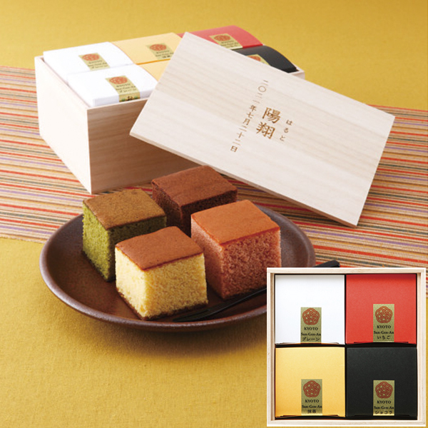 ●カステラ(プレーン・宇治抹茶・ショコラ・いちご×各1)