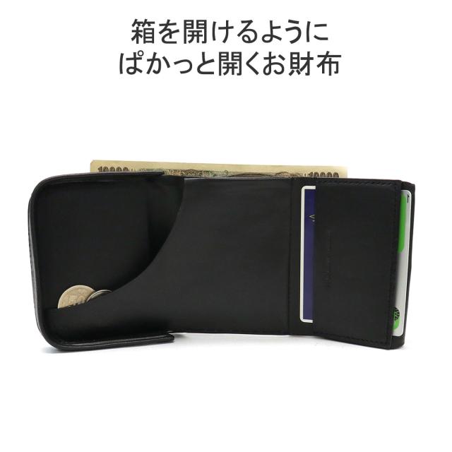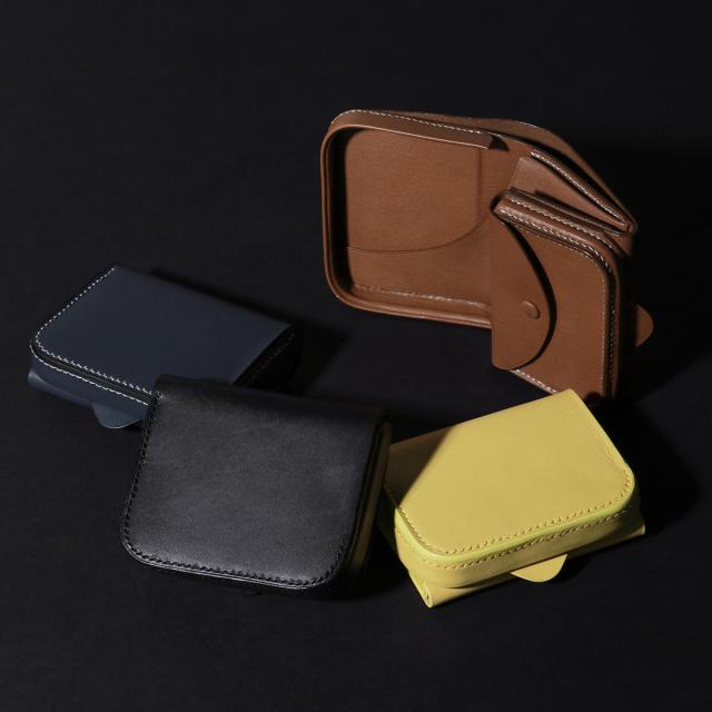 垂直に配置した革を立体的に縫製する "駒合わせ縫い" という技法で造られた3つ折りの財布。底面の持ち手を引っ張りながら開くことで、内装へアクセスする仕組みに。箱を開けるようにぱかっと開閉ができる、遊び心のあるデザインが特徴です。また紙幣、小銭入れスペース、カードポケットなど必要な機能もしっかり押さえた仕上がりがポイント。