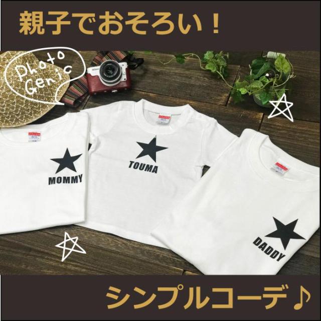 名前入り 親子3点セット リンクコーデ tシャツ 誕生日 名入れ スター 黒 black ロゴ セット プレゼント 名入れ 名前 出産祝い ギフト キッズ お揃い ペア リンクコーデ 家族写真 親子セット 親子ペア ペアルック 家族コーデ DADDY MOMMY