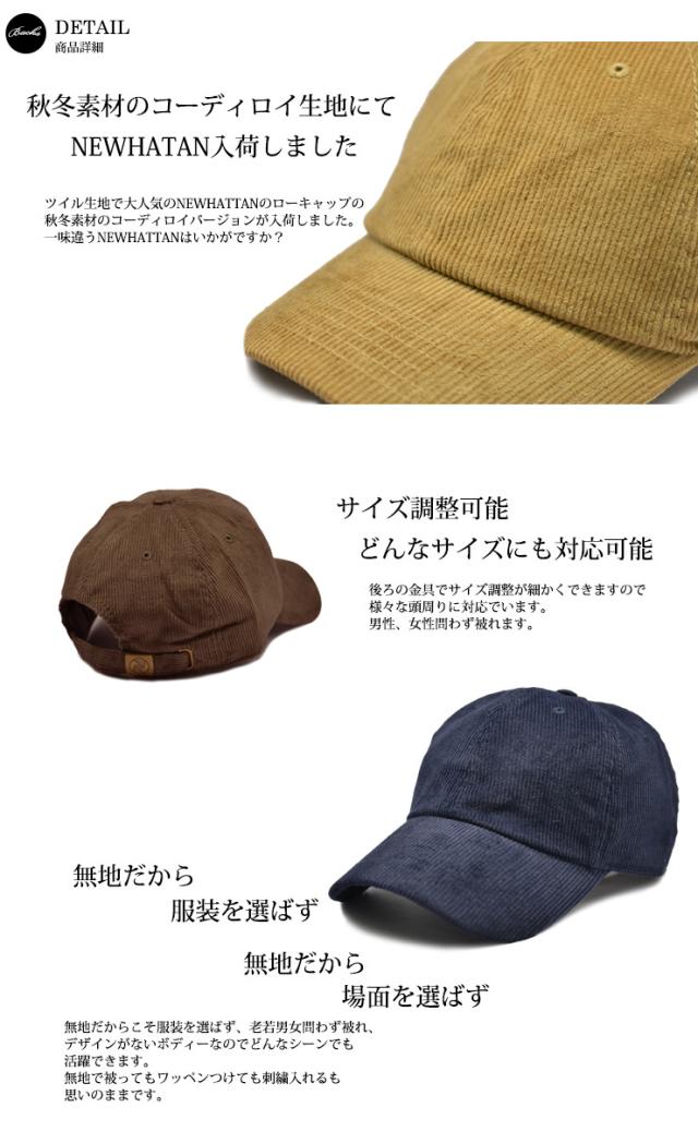 ツイル生地で大人気のNEWHATTANのローキャップ秋冬素材のコーディロイバージョンが入荷しました。