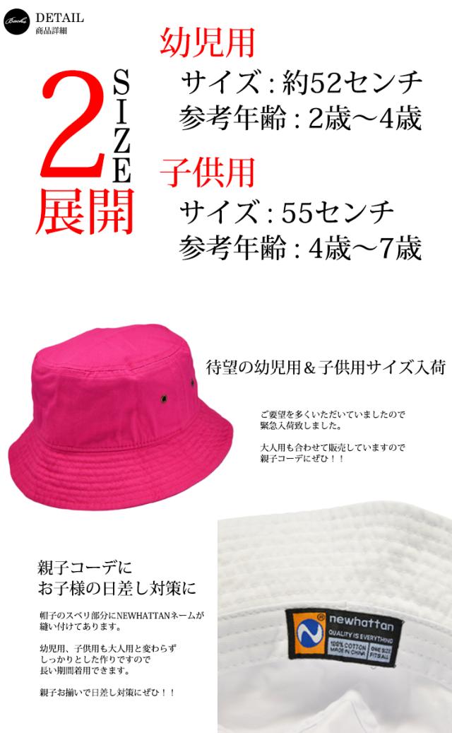 キッズ バケットハット 子供用 NEWHATTAN バケット ハット 幼児 子供 2サイズ展開 ジュニア ニューハッタン 男の子 女の子 男児 女児 日差し 日除け 通園 通学 遠足 イベント レジャー コットン 綿 小さいサイズ バケハ
