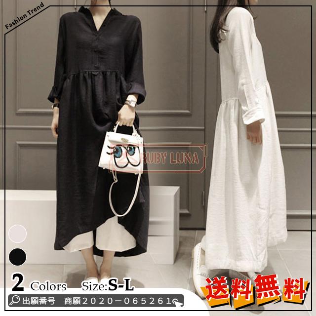 赤字覚悟 送料無料 ワンピース レディース ロングワンピース シャツワンピース 膝丈 婦人服 無地 黒 白 大きいサイズ おしゃれ 可愛い 長袖 大きいサイズ リボン 30代 40代 50代