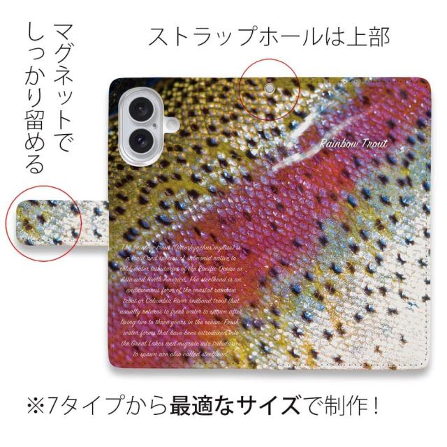 スマホケース 手帳型 カード収納 マグネット iPhone17 Pro Max iPhone Air iPhone16e iPhone16 Pro Max 16 Plus 15 Pro Max Xperia 10 VII Galaxy AQUOS ARROWS Pixel10 XL 釣り 魚 ルアー ニジマス(レインボートラウト)のウロコ