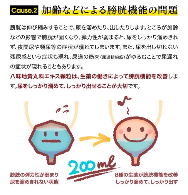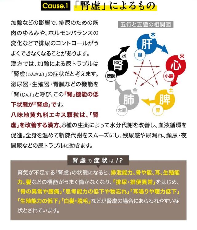 体力中等度以下で、疲れやすくて、四肢が冷えやすく、尿量減少又は多尿で、ときに口渇があるものの次の諸症:下肢痛、腰痛、しびれ、高齢者のかすみ目、かゆみ、排尿困難、残尿感、夜尿症、頻尿、むくみ、高血圧に伴う随伴症状の改善(肩こり、頭重、耳鳴り)、軽い尿漏れ