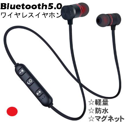 ワイヤレス イヤホン Bluetooth5.0 マグネット内蔵 軽量 防水 iPhone スマホ 通話 スポーツ 運動 音楽 ゲーム 動画 ビデオ