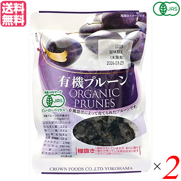 プルーン プラム 種ぬき クラウンフーヅ 有機プルーン 110g 2個セット 送料無料