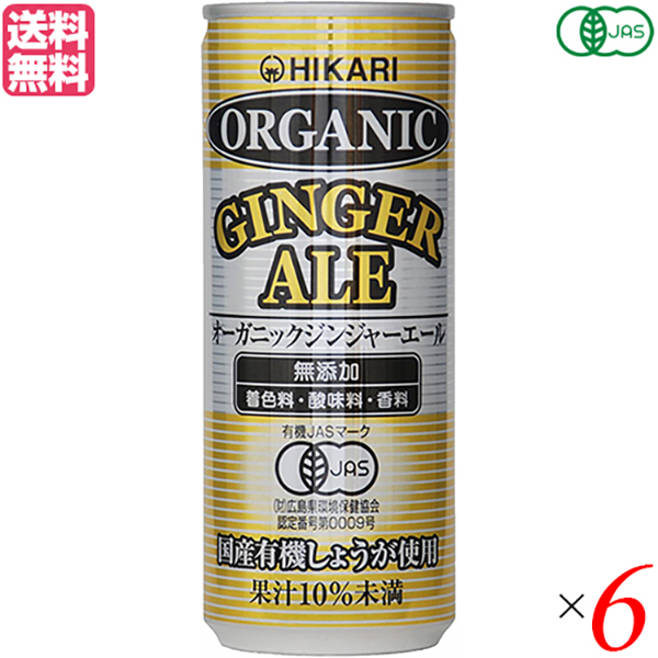 【超BIGラリー!ポイント最大+16%!】ジンジャーエール 缶 辛口 ヒカリ オーガニックジンジャーエール 250ml 6本セット