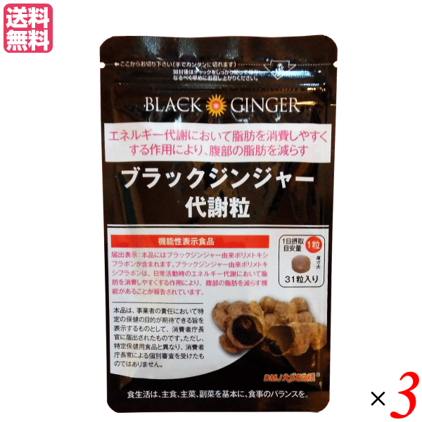 ブラックジンジャー代謝粒 31粒 3袋セット 機能性表示食品 クラチャイダム 黒しょうが 黒ウコン 送料