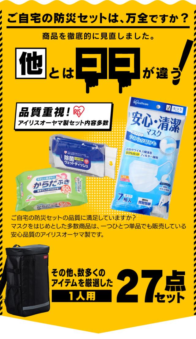 防災グッズ 防災セット 防災リュック 避難リュック 1人用27点 BS127 防災グッズ 1人用 防災 災害 震災 台風 避難 緊急 非常用 備え セット アルミブランケット ウォータータンク マスク 衛生用品 アイリスオーヤマ 送料無料
