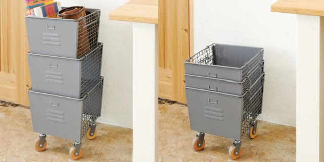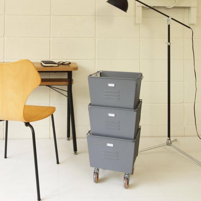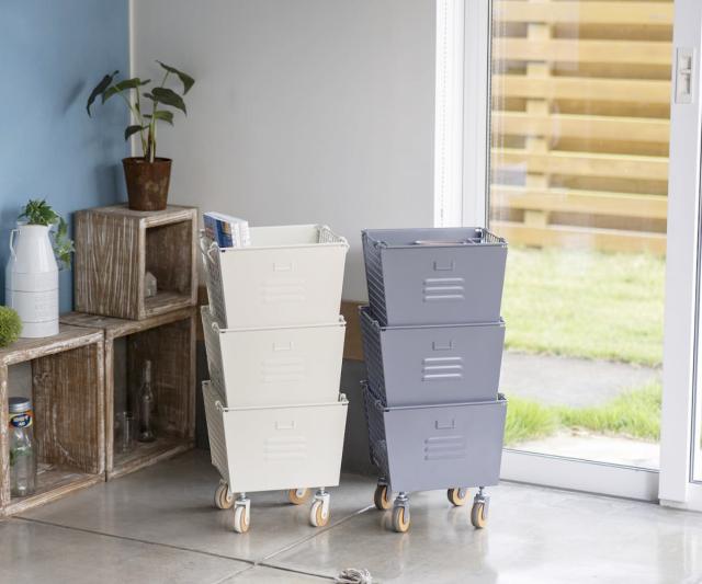 無骨で男前なスチールロッカー風デザインの収納ボックです。重ねて使えるので、省スペースながら収納力を発揮します。
