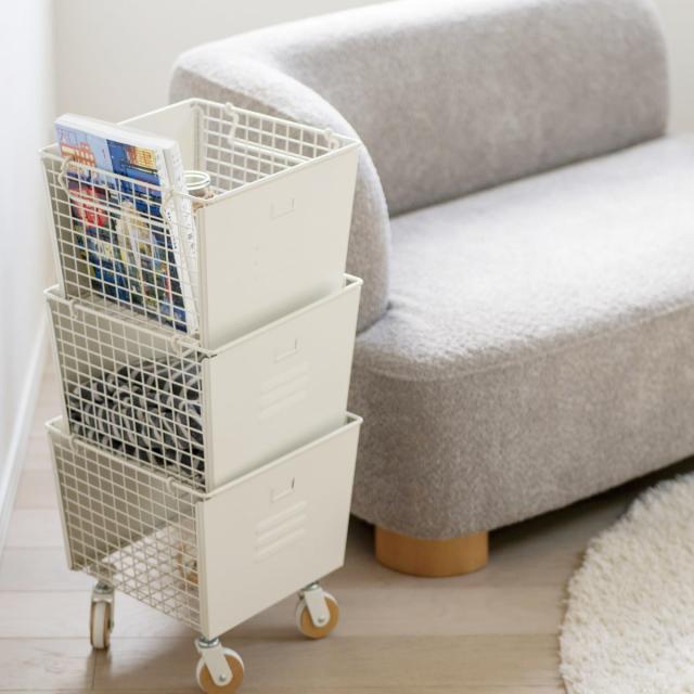 スタッキングボックス セット 3個組 スチール製 LIV 幅31cm ( 収納ボックス ワゴン 収納ケース スチール 収納 キッチン収納 スタッキング 積み重ね キャスター付き リビング収納 持ち手付き おしゃれ )