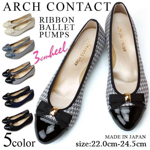アーチコンタクト パンプス 痛くない 歩きやすい 疲れない ローヒール リボン 外反母趾 柔らかい 39188 日本製 靴