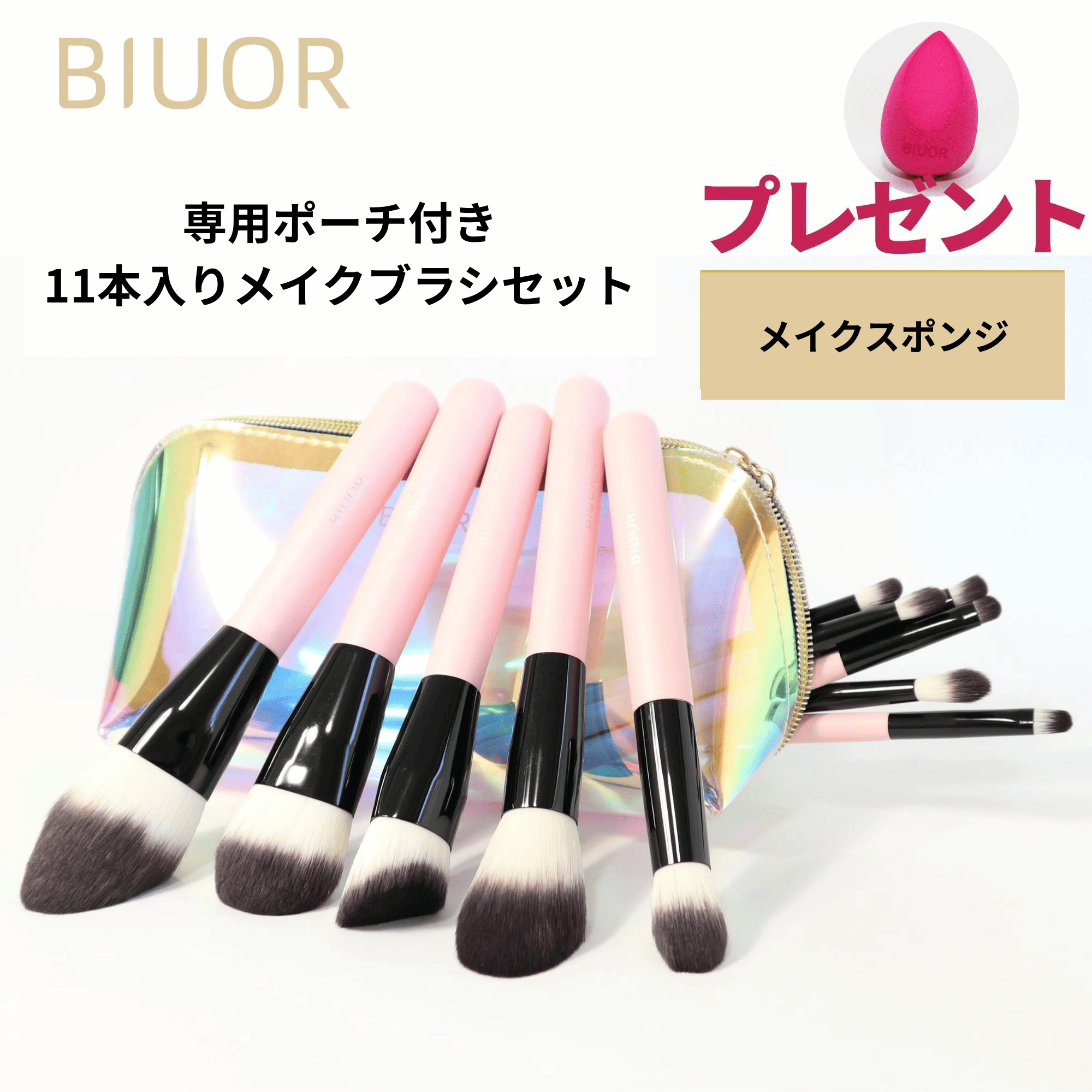 【送料無料】 BIUOR 11本メイクブラシセット アイシャドウブラシ 化粧ブラシ プレゼント 高級タクロン 毛量たっぷり 超柔らかい 専用ポーチ付 収納 携帯 SHINE シリーズ ピンク プレゼント