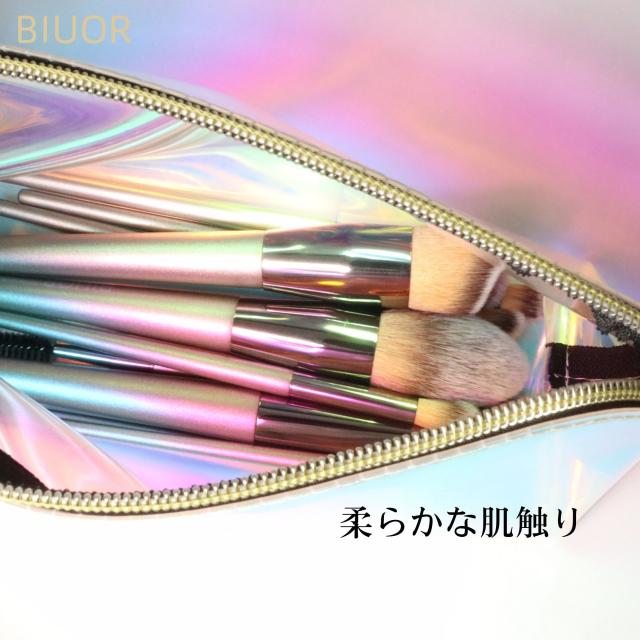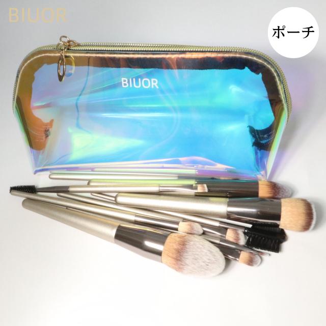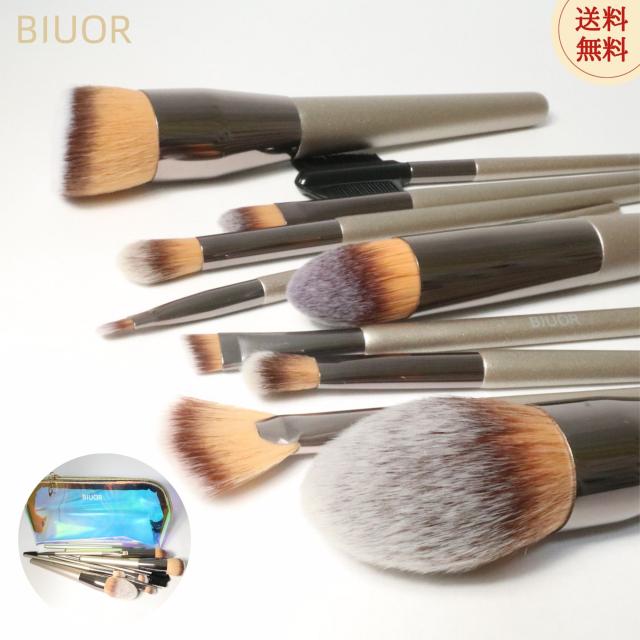 【送料無料】 BIUOR 10本メイクブラシセット 化粧ブラシ プレゼント 高級タクロン 毛量たっぷり 超柔らかい 専用ポーチ付 収納 携帯 SHINE シリーズ プレゼント