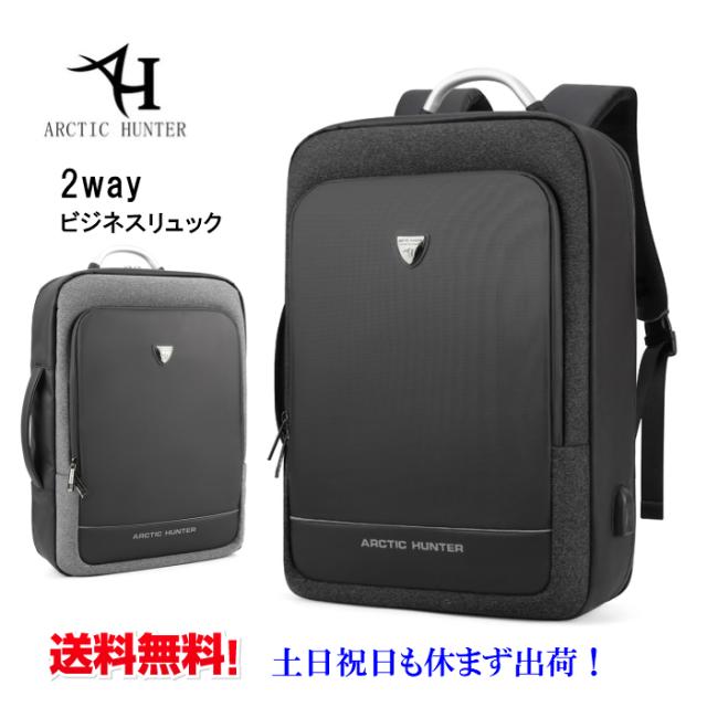 ビジネスリュック 2WAY リュック 大容量 ビジネスバッグ メンズ PC 撥水素材 A4 書類 手提げ・リュックの2WAY 自転車 通勤 出張 大容量 パソコンバッグ ビジネス リュックサック バックパック ARCTIC HUNTER B00227 送料無料