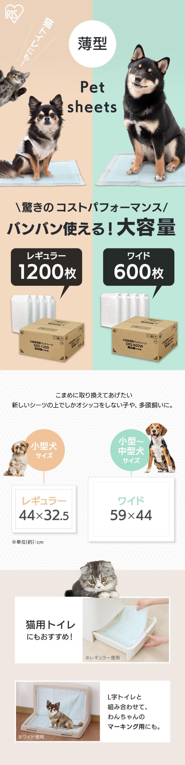 ペットシーツ ワイド 600枚 レギュラー 1200枚 薄型 コンパクト 6層構造 ペットシート トイレシート おしっこシート 犬 猫 ペット用シート トイレシーツ 大容量 まとめ買い 犬シート アイリスオーヤマ DES *