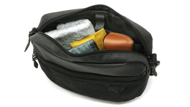 外側にはメッシュポケットとキーフック内蔵のジップポケットを装備。すぐに取り出したいアイテムや、使用頻度の高いパスケースなどの収納に最適なスペースです。鍵も一緒に管理でき、シンプルながらも使い勝手抜群の仕上がりとなっています。