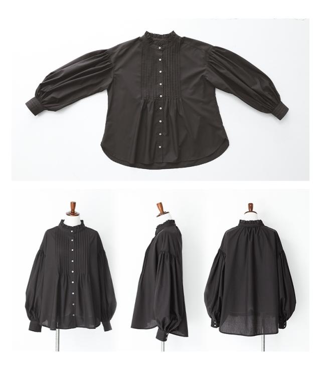 『ボリューム袖ピンタックブラウス』※メール便可※【10】 [ブラウス レディース トップス シャツ 長袖 スタンドカラー 立ち襟 フリル ピンタック ボリューム袖 きれいめ]