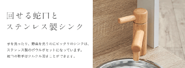 ツマミ、蛇口、脚:ラバーウッド無垢材