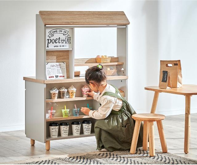 【リバーシブルで遊べるキッチンカフェ】おままごとキッチン poet cafe(ポエトカフェ) A type 4色対応 おままごと おままごとキッチン おままごとセット お店屋さん お店やさんごっこ クリスマスプレゼント おもちゃ 木製