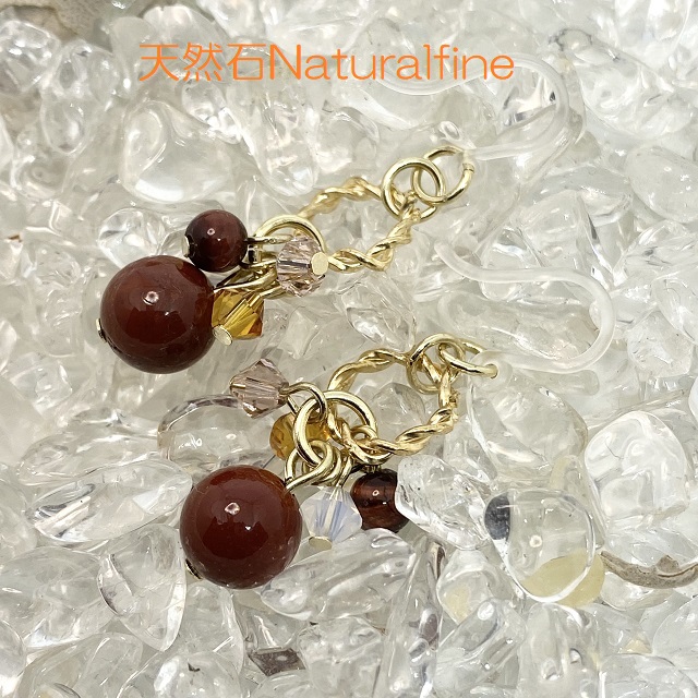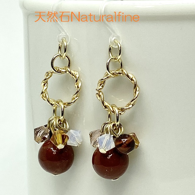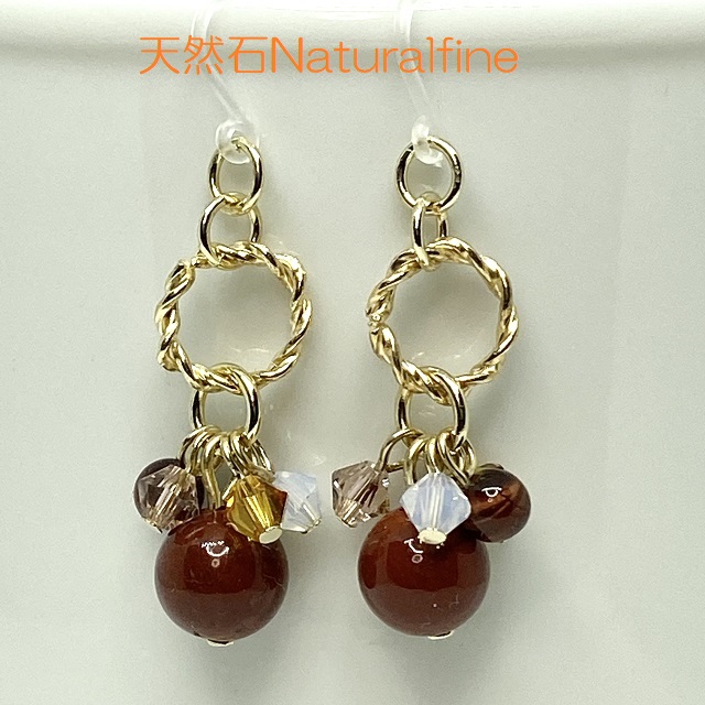 こちらは、天然石ムーアカイト(モッカイト)とレッドタイガーアイのリングピアス(イヤリング)です。 ムーアカイトは、赤茶や黄色など様々な色の種類があるパワーストーンです。冬のコーデにおすすめですよ!