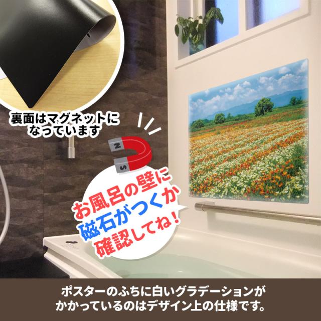 お風呂で使えるマグネット製のポスターです。 ■商品サイズ:約570×約400mm ※本製品はマグネットを使用しています。タイルや木製等、磁石がつかない壁面にはご使用いただけませんので、ご使用になる場所に磁石がつくことをご購入前にご確認ください。 |