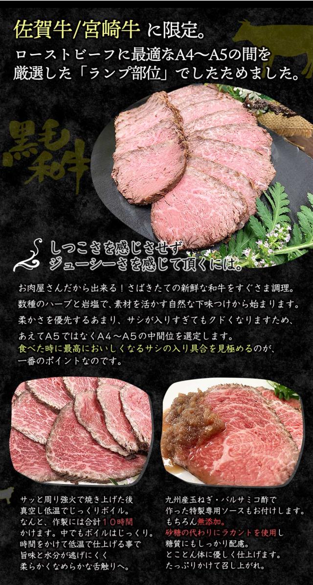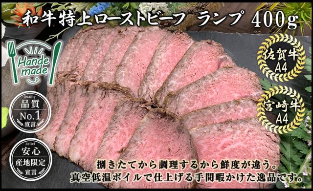 和牛 ローストビーフ 極上 ランプ 佐賀牛 宮崎牛 特選 A4-A5 400g / 低糖質 糖質オフ 糖質制限 砂糖不使用 黒毛和牛 国産 ソース付き