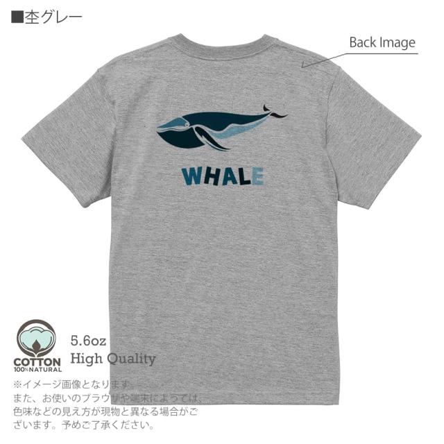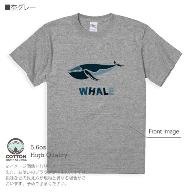 鯨 Tシャツ 半袖 ホエールウォッチング 5.6oz (オンス) 綿100% メンズ レディース 洗濯 大きいサイズ ホワイト ブラック グレー アイボリー 白 黒 灰色 肌色 春 夏 秋 冬 オシャレ かわいい クジラ くじら 雑貨