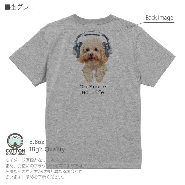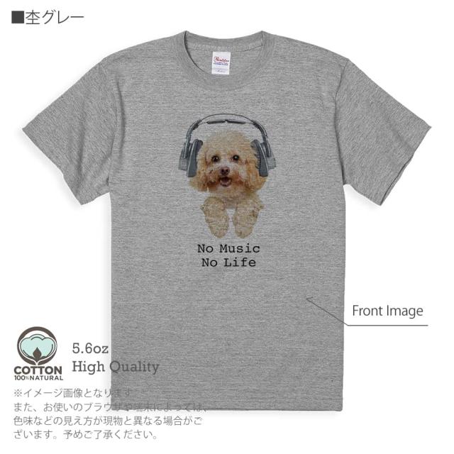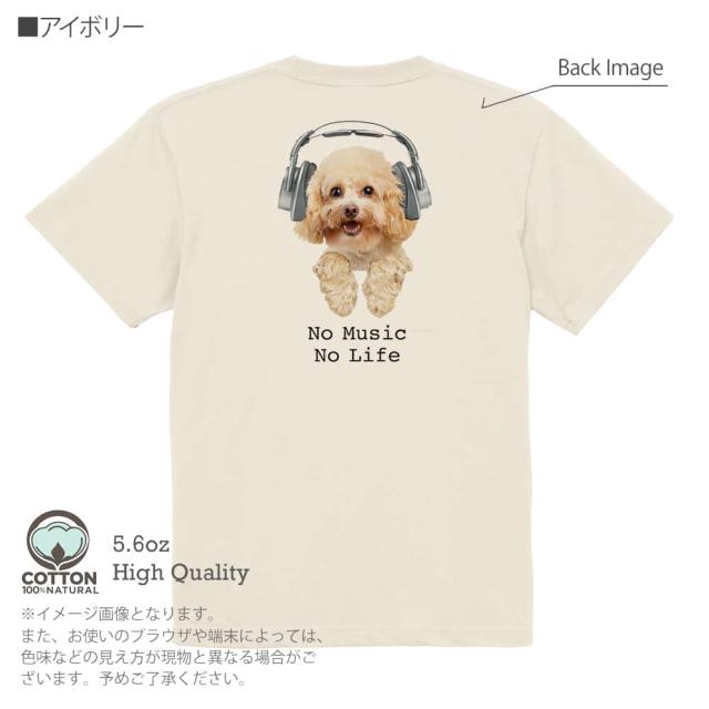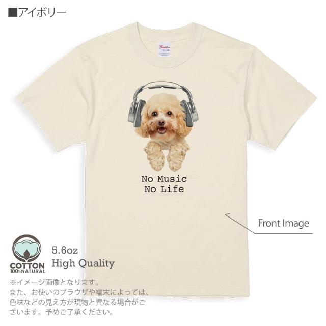 犬 Tシャツ 半袖 トイプードルだってNo Music No Life 5.6oz (オンス) 綿100% メンズ レディース 洗濯 大きいサイズ ホワイト ブラック グレー アイボリー 白 黒 灰色 肌色 春 夏 秋 冬 オシャレ かわいい イヌ いぬ 雑貨