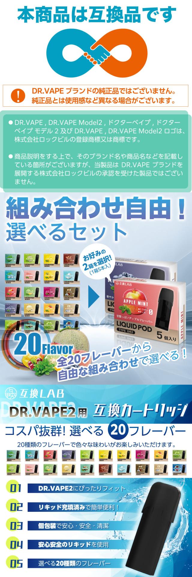 電子タバコ 互換LAB(R) DR.VAPE Model2用 互換 フレーバーカートリッジ 選べる20フレーバー ドクターベイプ モデル2用 カートリッジ 互換ラボ メンソール ミント 使い捨て リキッド 充填済み コスパ 簡単 再生 カプセル 対応 個包装 電子たばこ VAPE 爆煙
