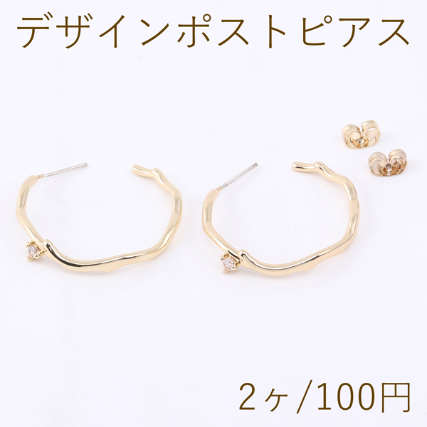 デザインポストピアス ジルコニア付き 29mm ゴールド(2ヶ)