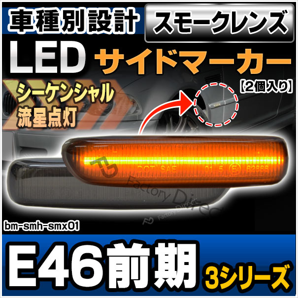 ll-bm-smh-smx01 (シーケンシャル点灯) (スモークレンズ) 3シリーズ E46前期 LEDサイドマーカー LEDウインカー 流星点灯 BMW(ウインカー ウィンカー ledマーカー カスタム パーツ 外装 シーケンシャルウィンカー グッズ 流れるウインカー)