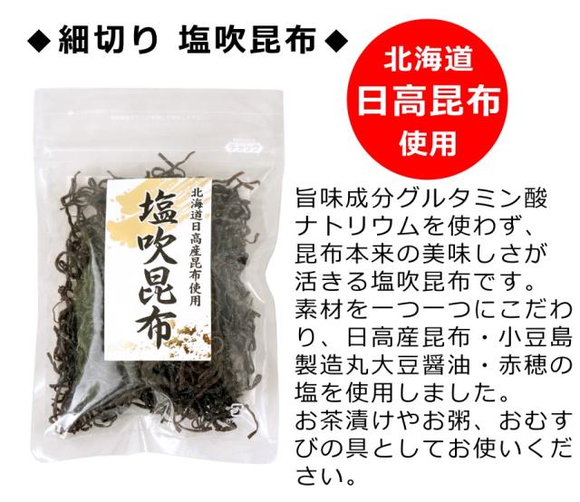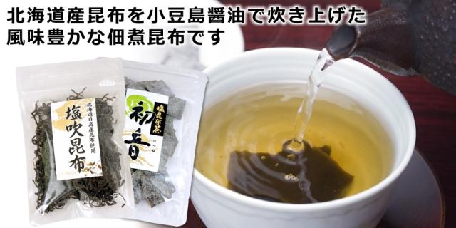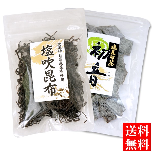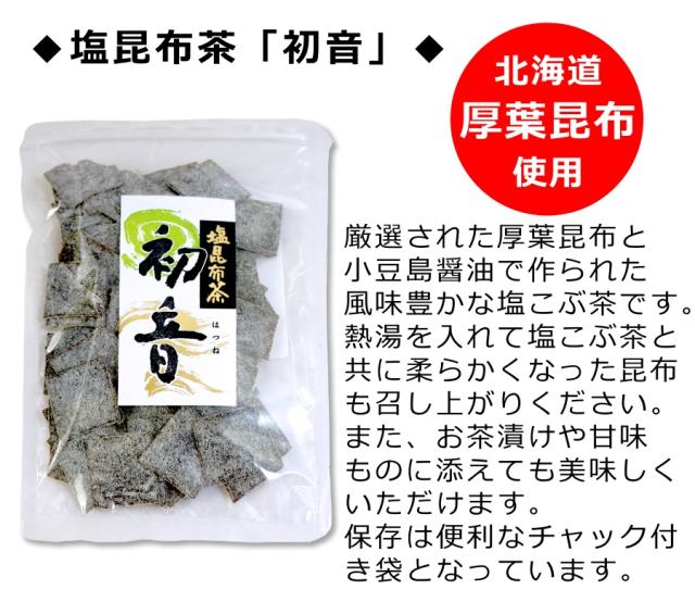 | ■商品内容: | 細切り塩吹昆布 / 角切り塩昆布茶「初音」 各1袋 |